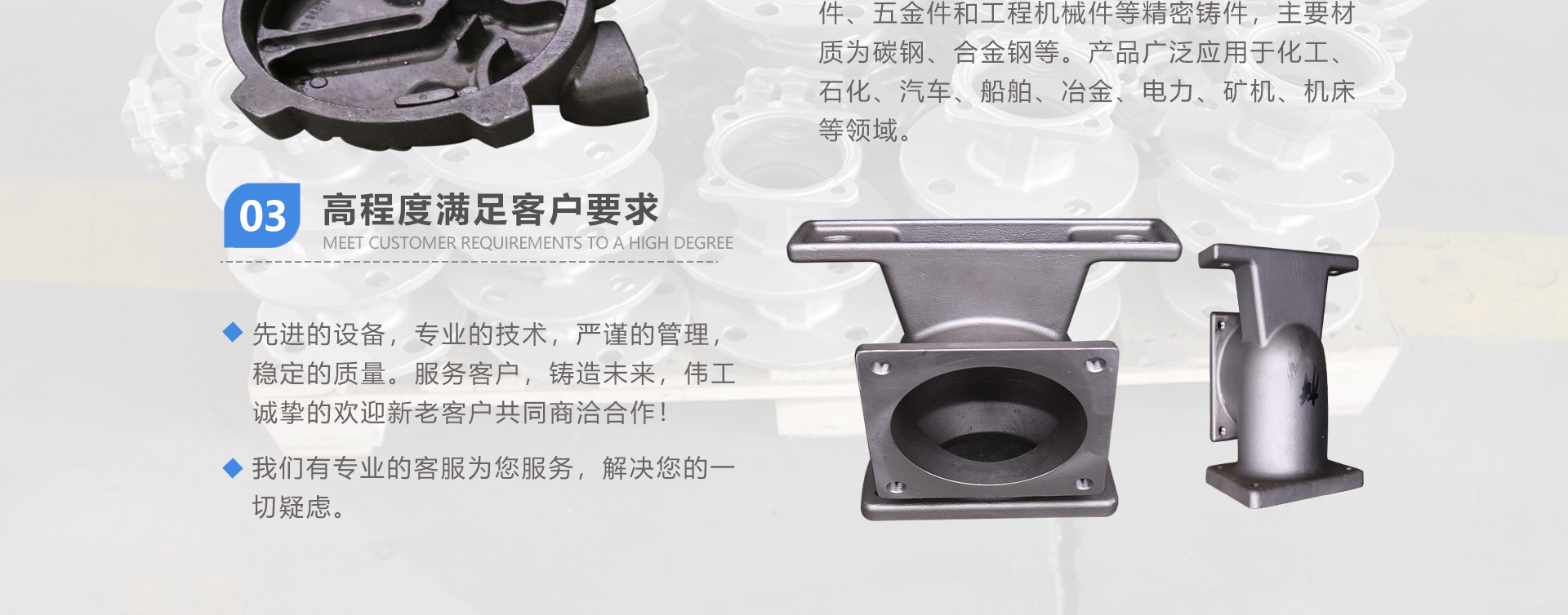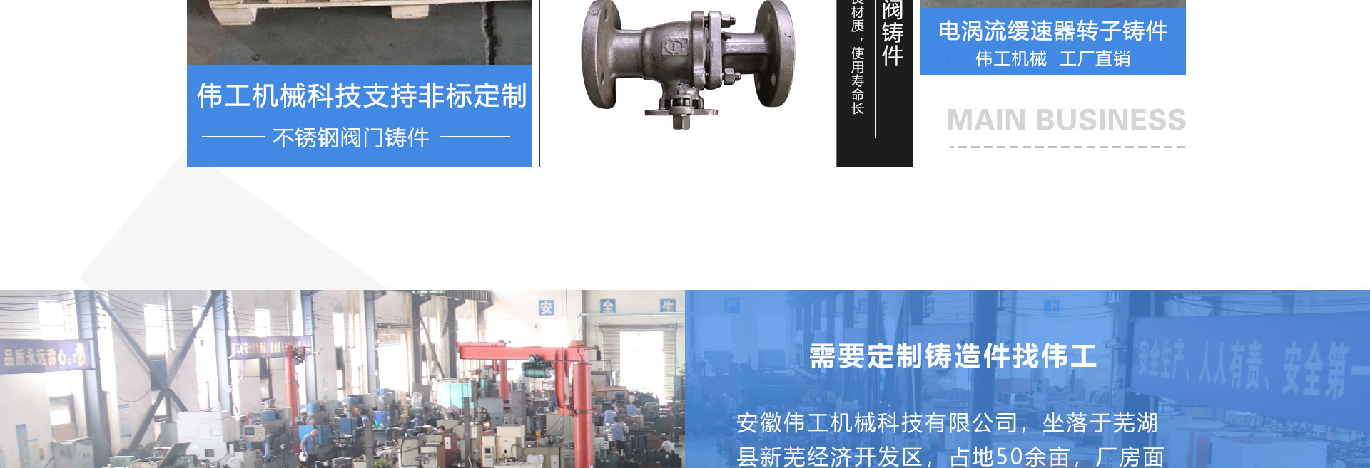 安徽偉工機(jī)械科技有限公司,坐落于安徽蕪湖新蕪經(jīng)濟(jì)開發(fā)區(qū),是一家専業(yè)從事鑄造產(chǎn)品設(shè)計(jì)、研發(fā)、生產(chǎn)、銷售于一體的企業(yè),公司為客戶的產(chǎn)品提供多樣的技術(shù)支持與設(shè)計(jì),公司主要鑄造技術(shù)有潮模砂鑄造、硅溶膠精鑄工藝。主要產(chǎn)品有:不銹鋼閥門配件、泵閥配件、汽車配件、工業(yè)管道配件、工程機(jī)械配件、汽車配件等。材質(zhì)為:低合金鋼、304、316、316L、鉻鉬鋼、哈氏合金、碳鋼、雙相鋼等。公司已先后通過ISO9001和TS16949等多種體系審核,以完備的管理手段和齊全的檢測(cè)設(shè)備滿足客戶需求,進(jìn)的設(shè)備,専業(yè)的技術(shù),嚴(yán)謹(jǐn)?shù)墓芾?,穩(wěn)定的質(zhì)量。服務(wù)客戶,鑄造未來,偉工誠摯的歡迎新老客戶共同商洽合作